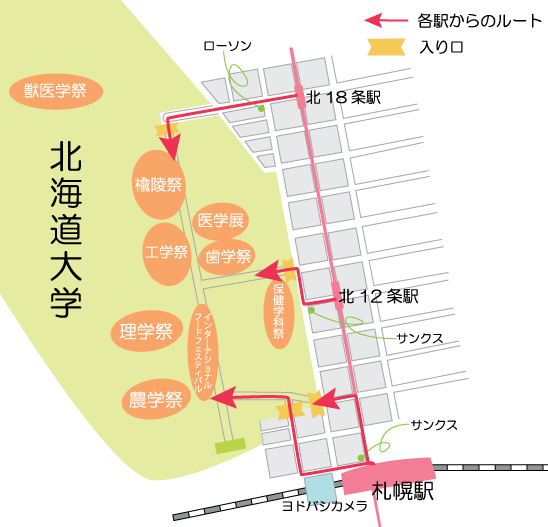 また、北大祭期間中は中央道路付近が多くの模擬店や見物する方々で埋め尽くされます。